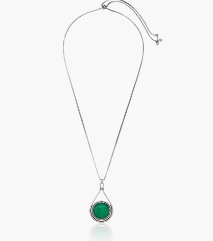 Layered or worn alone, the Lucky Brand Double Layered Necklace is your choice. The metal necklace features a double-sided gemstone pendant for a simple look. Silver finish. Adjustable length. Button closure. import. Dimensions: Chain circumference: 71.12cm Pendant height: 6.95cm Pendant width: 3.89cm Weight: 34.04g
